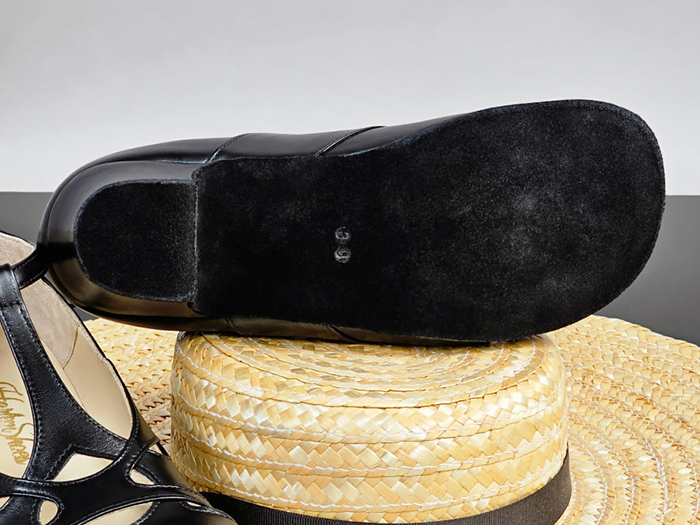 Dancers who want less slipperiness sometimes choose a rubber patch. This is a rubber insert in the rigid leather sole at the front part of the shoes as a braking system. It has the same function as the “half rubber heel,” but the difference is that the rubber patch can be added to all shoe models.